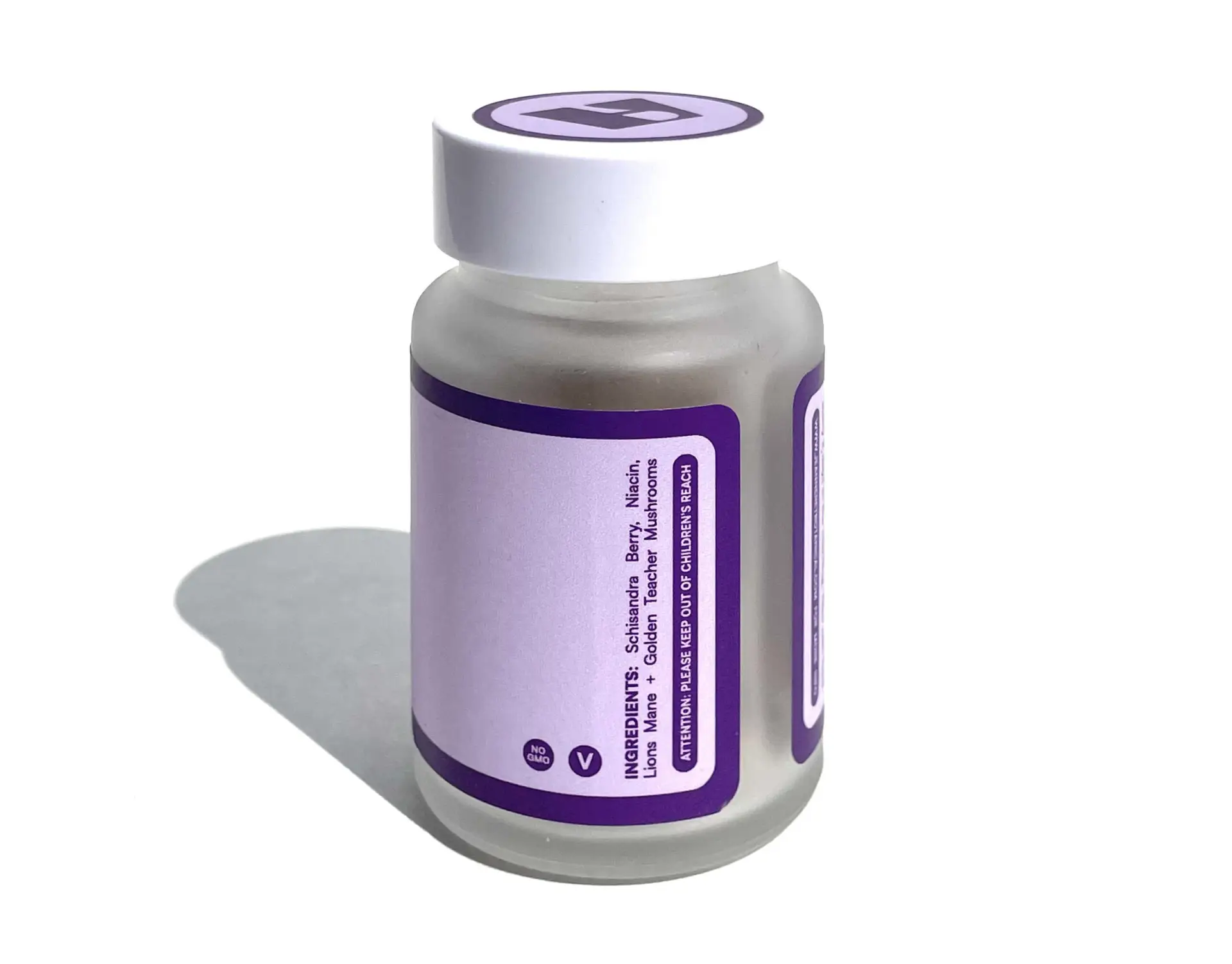 Classic blend, fresh identity. Formerly known as ‘Discover’, this supplement caters to individuals in pursuit of an extra spark. Unleash your latent creativity, sustain concentration, and boost your efficiency with our unique mixture of Schisandra Berry, Lion’s Mane, Golden Teacher Mushroom, and Niacin.