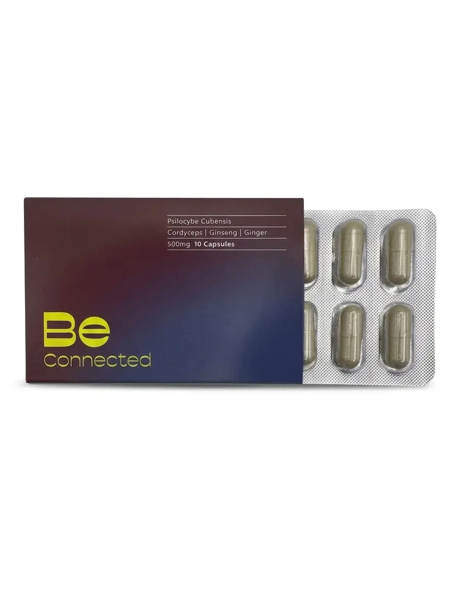 Unlike traditional microdose capsules designed for daily wellness protocols, Be Connected delivers a moderate 350mg dose of organic Psilocybe Cubensis in each capsule. This is paired with three carefully selected adaptogens that complement the social experience:
