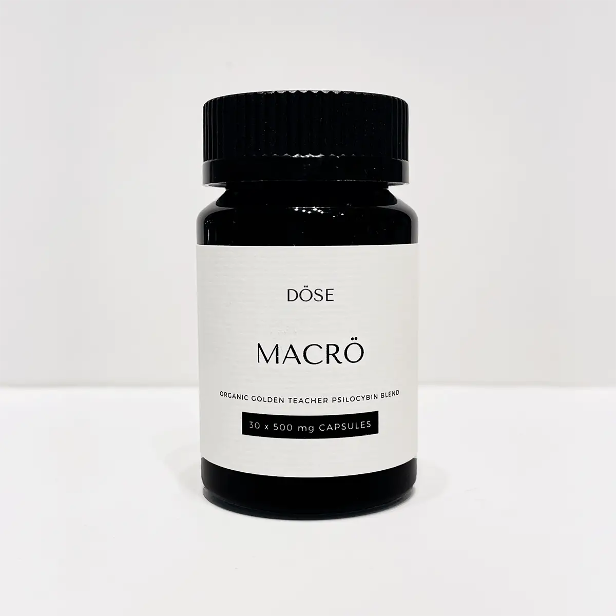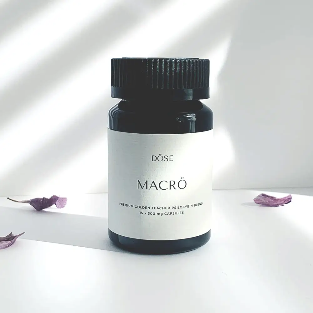 DÖSE MACRO is a versatile dose that can help you achieve the full spectrum of the psilocybin dosing experience. This blend comprises of 450mg of premium quality Organic Golden Teacher (Psilocybe cubensis) in a convenient 500mg capsule dose extracted only from the fruiting bodies of the psilocybin mushroom. In addition, 50mg of organic peppermint (mentha piperita) has been added as a soothing agent for potential digestive upsets while decreasing instances of nausea, or headaches. Each bottle contains your choice of 15 capsules (6,750mg) or 30 capsules (13,500mg) – Vegan friendly and Gluten Free.