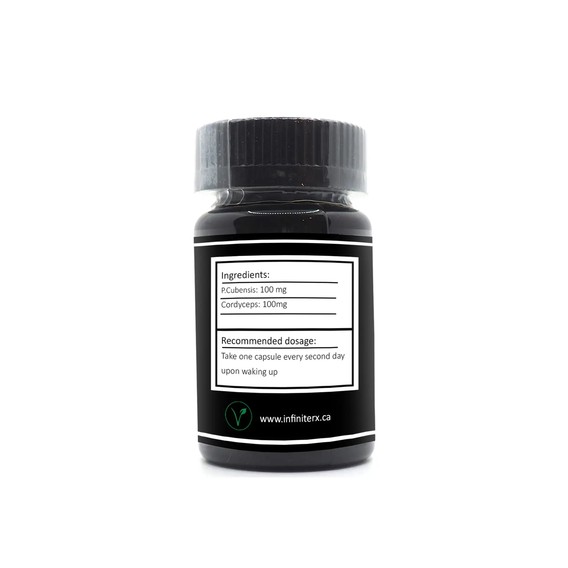Each bottle contains 30 capsules. Each capsule is 200mg (100mg of Magic Mushrooms, 100mg of Cordyceps).