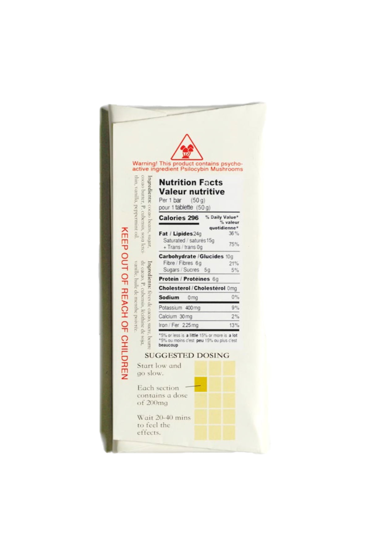 Ingredients: Cocao Beans, Sugar, Cocao Butter, P.Cubensis, Soya Letcithin, Vanilla, Peppermint Oil. (May contain traces of milk, nuts)